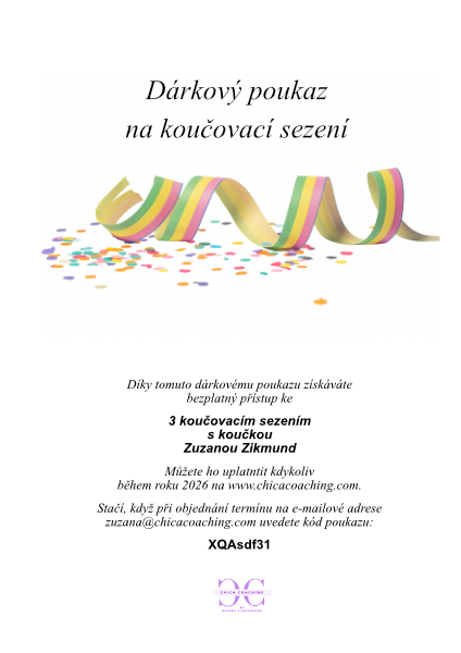 5. Jakmile obdarovaný od vás obdrží dárkový poukaz, bude ho moci jednoduše uplatnit. Stačí, když mě kontaktuje emailem na adresu zuzana@chicacoaching.com a zašle kód z poukazu.